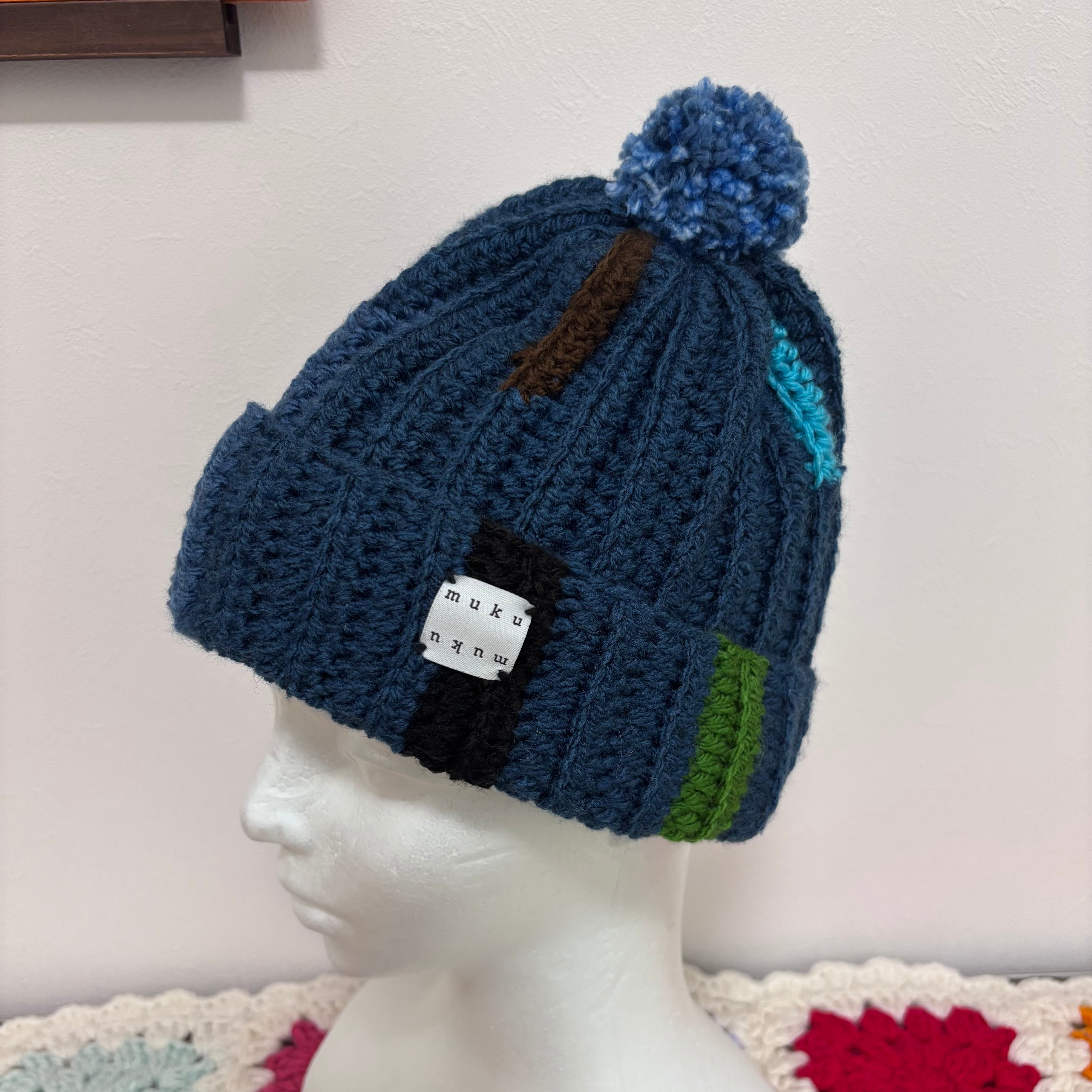 ざっくり編んでいるので、窮屈感なくかぶっていただけます◯