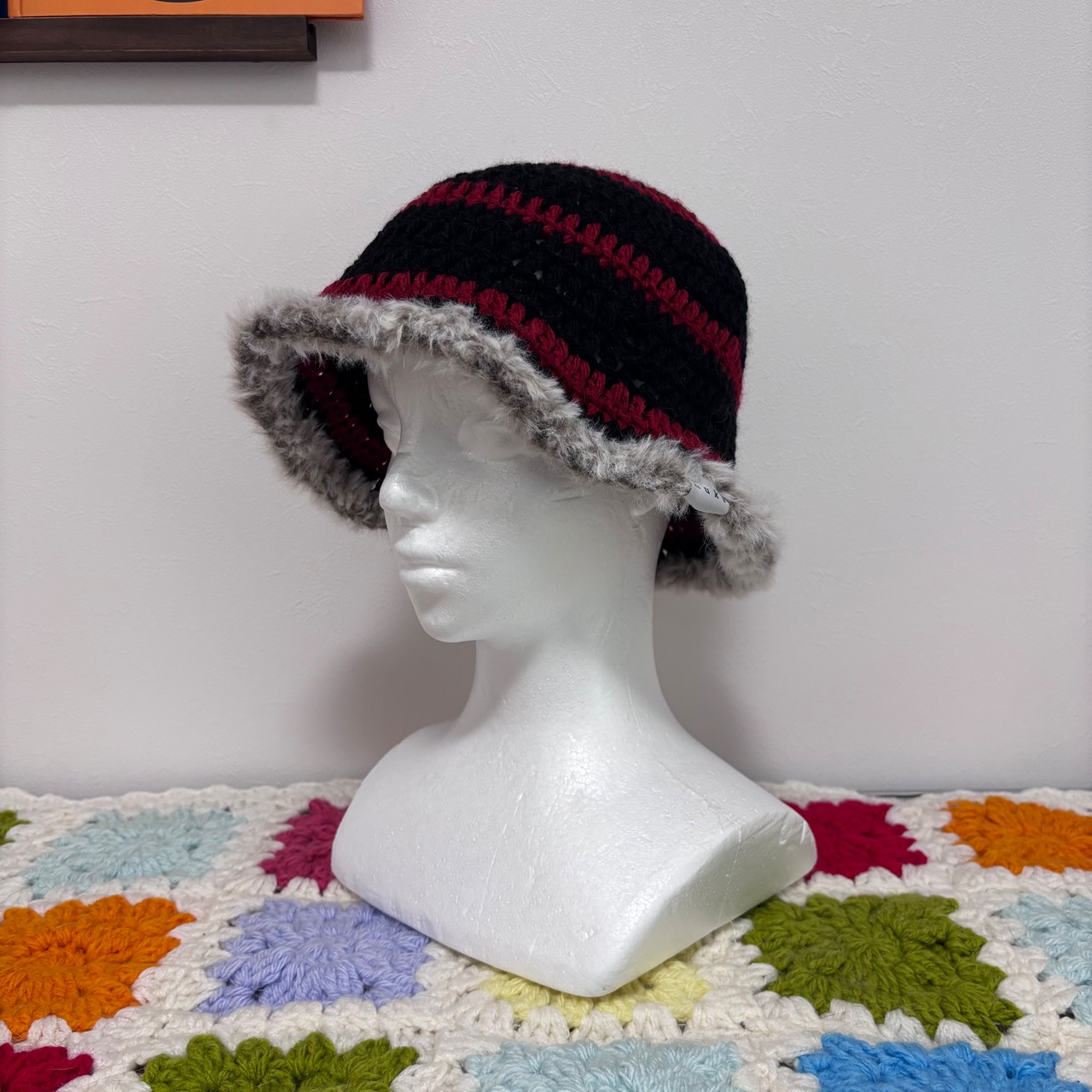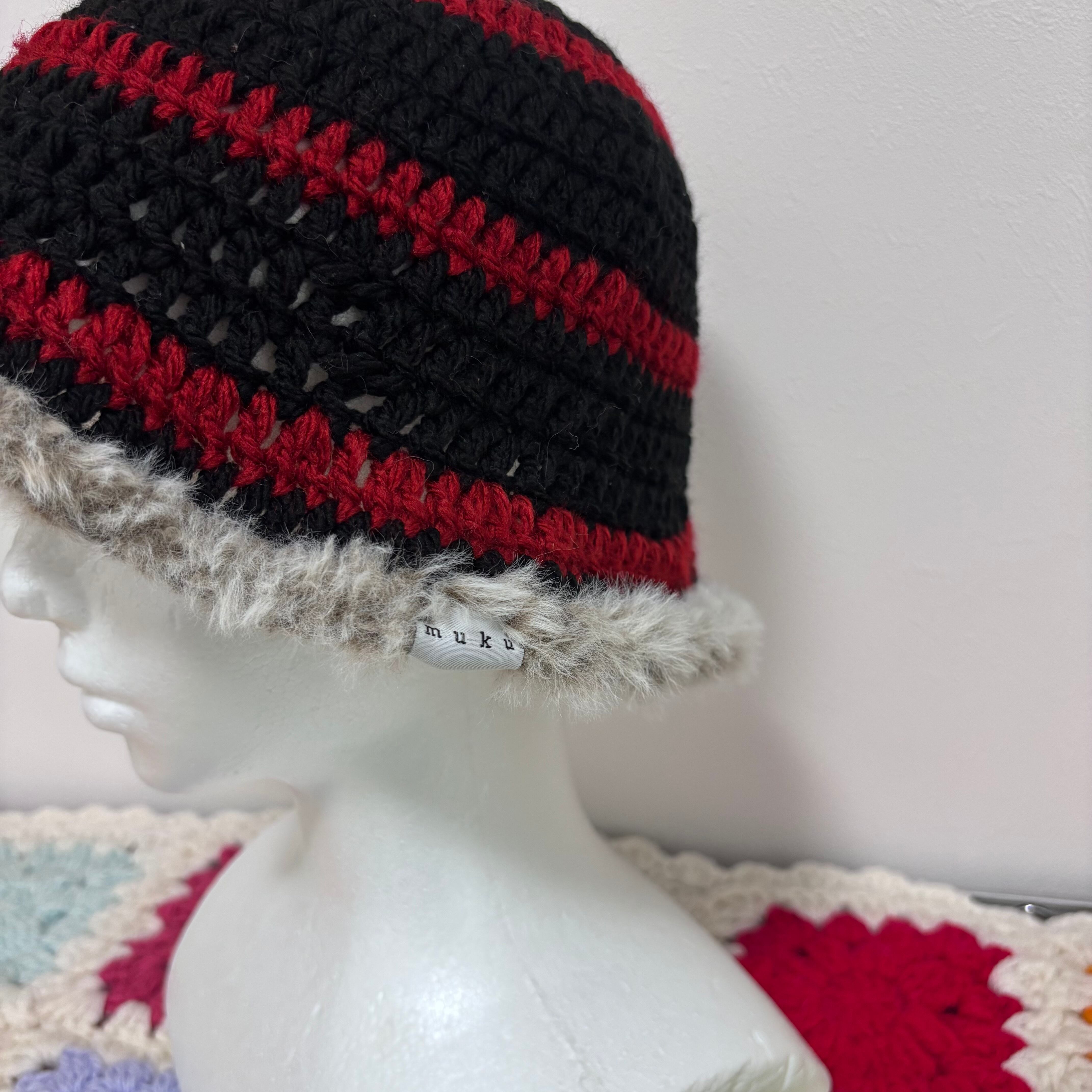 深めにつくっていて、毛糸がやわらかく合わせやすい帽子です^^